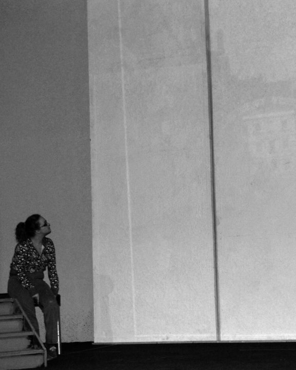 This version of Taming was set in the 1960's, and therefore the set design was a recreation of a colourful and hip London street in the '60's! I was asked to paint a huge backdrop of Carnaby Street, and I didn't realise quite how huge it would be until I saw that the canvases filled the backdrop of the stage! Here are a few photos of my progress - you can see in the second one just how big it is compared to me. I started with the sky and worked down, using the basis of the street sketched from a projection, and afterwards working from a printout.